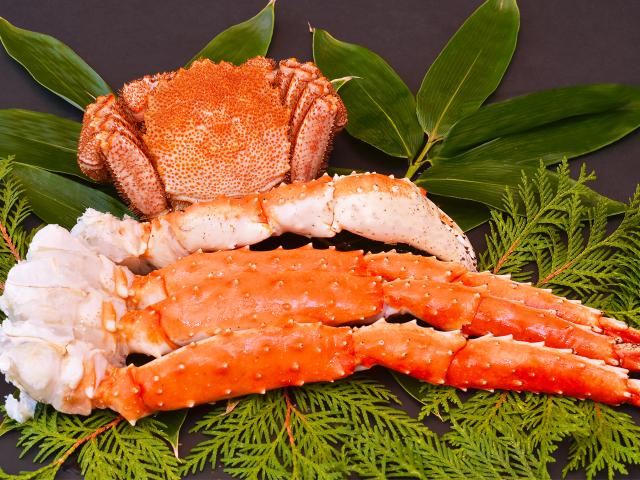 ロシア産(たらば蟹)、北海道産(毛がに)