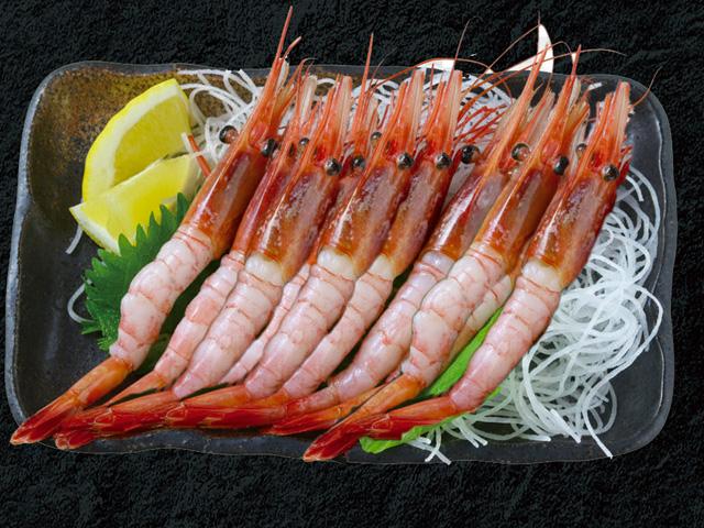 とろけるような甘さが魅力の「むき甘えび」。 殻をむく手間がなく、そのままお刺身でお楽しみいただけます。 やわらかく、ほどよい甘みが口いっぱいに広がります。