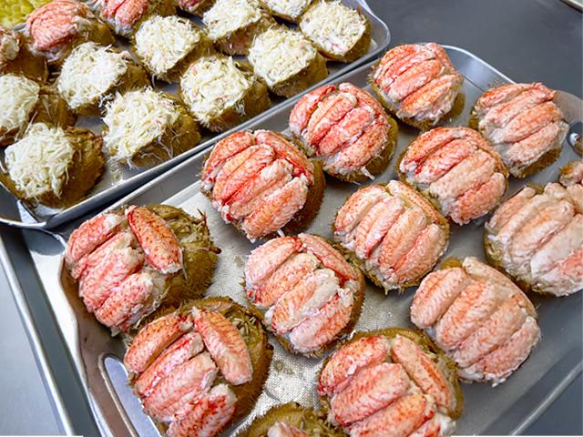 今年の毛がに甲羅盛りは、足が折れたり、足が短くて販売できない毛がにを