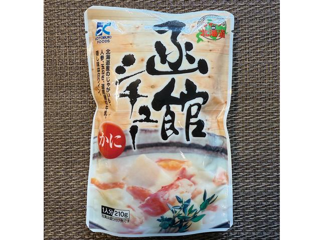 北海道産のじゃがいも・人参・玉ねぎに、北海道南産の牛乳を合わせてじっくり煮込んだ「函館シチュー かに入り」。やさしい甘さの野菜とミルクのまろやかさに、かにの旨みがしっかりと溶け込んだ贅沢な味わいです。